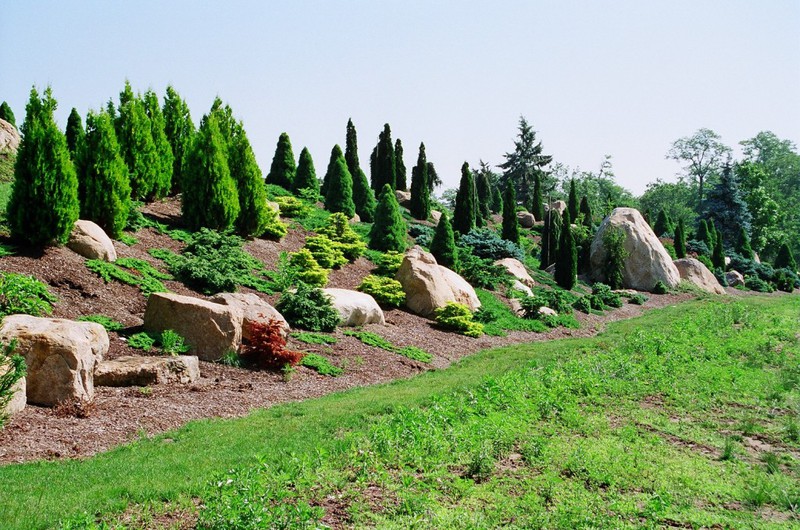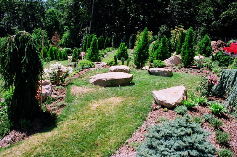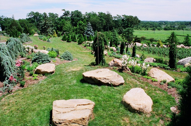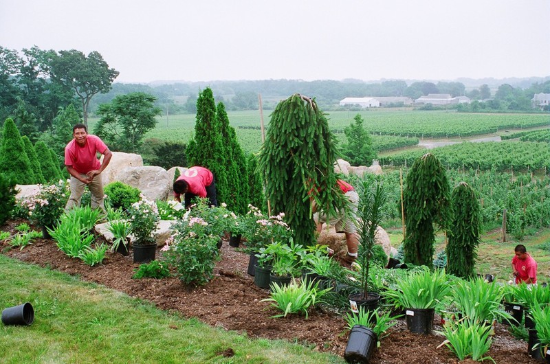 This Mediterranean hill side has always been the vision of the home owner. While working with an Italian Designer from Milan, we were proud to exceed the owners expectations. This has been a labor of love for us to help transform a vision to a reality. The total garden area is 6 acres overlooking the Private Estate Vinyard, with a view of Connecticut to the North and Montauk to the South. Among all the specimen trees are 3,000 ground cover plantings all laid out with grass paths for strolling and admiring the view.